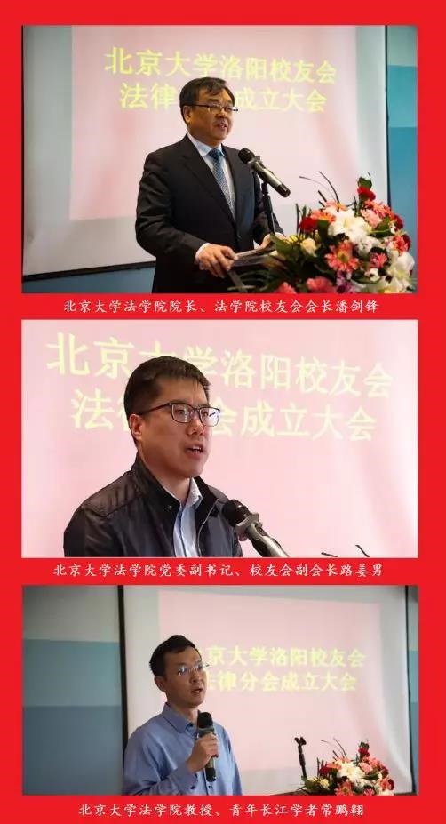 2019年4月13日上午,北京大學(xué)洛陽(yáng)校友會(huì)法律分會(huì)成立大會(huì)在洛陽(yáng)市喜鵲愉家賓館二樓會(huì)議室隆重舉行。北京大學(xué)法學(xué)院院長(zhǎng)、法學(xué)院校友會(huì)會(huì)長(zhǎng)潘劍鋒,法學(xué)院黨委副書(shū)記、法學(xué)院校友會(huì)副會(huì)長(zhǎng)路姜男,法學(xué)院教授、青年長(zhǎng)江學(xué)者常鵬翱,法學(xué)院校友會(huì)辦公室主任黨淑平和副主任魯昕鑫親臨大會(huì)。北京大學(xué)洛陽(yáng)校友會(huì)副會(huì)長(zhǎng)洛陽(yáng)泰斯探傷技術(shù)有限公司CEO竇伯英與來(lái)自校友會(huì)教育委會(huì)、健康委會(huì)以及部分律師事務(wù)所的校友代表起參加大會(huì)。北京大學(xué)新疆校友會(huì)副會(huì)長(zhǎng)兼秘書(shū)長(zhǎng)聶寧程到會(huì)祝賀。北京大學(xué)洛陽(yáng)校友會(huì)會(huì)長(zhǎng)郭引強(qiáng)與會(huì),校友會(huì)副會(huì)長(zhǎng)兼秘書(shū)長(zhǎng)劉曉鵬主持會(huì)議。