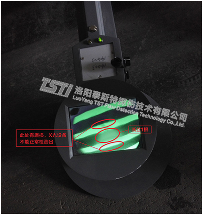 由于該礦對輸送帶鋼繩芯檢測設備的概念和認識局限于他們之前采購使用但直不滿意的X光手持檢測設備(客戶反映X光設備僅僅只能檢測斷絲,而且設備笨重檢測率低下且對使用人員有危害,維護人員為排斥)。TST磁技術的輸送帶鋼繩芯在線自動監測系統對該礦維護人員來說既新奇又疑慮。為了讓該礦客戶對TST設備的性能有個直觀震撼的認識,我公司主動要求在現場與X光檢測設備驗傷比試。
